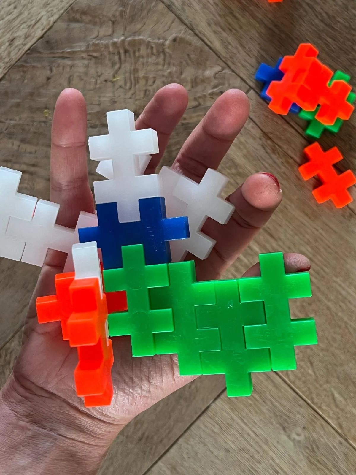 Deze bouwstenen gebruiken ze al heel lang. De jongste gebruikt de grootste stenen (PLUS PLUS BIG) nog. Die zijn ook ideaal voor in de auto. En de oudste gebruikt de mini variant. Je hebt ze met handige koffertjes maar ook in kokers waar ze verschillende modellen moeten bouwen.