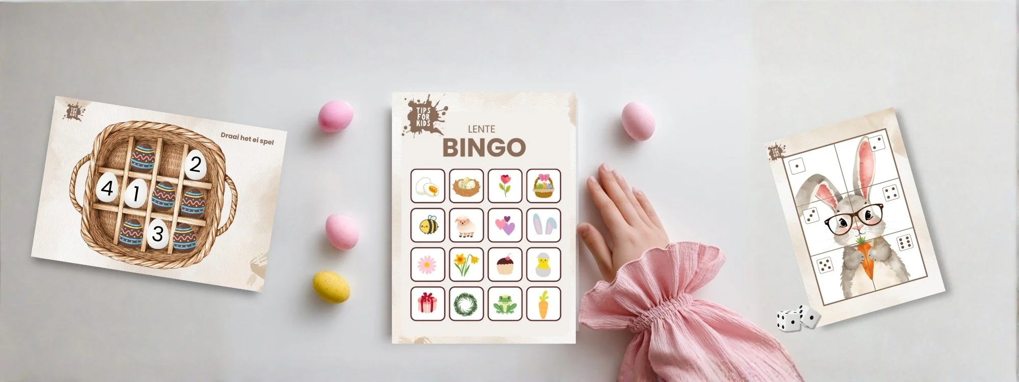 Pasen is het moment om met je kinderen aan de slag te gaan. Knutselen met Pasen hoeft niet ingewikkeld te zijn. Hier vind je makkelijke paasknutsels, een leuke paasbingo, een dobbelspel en gratis template voor een originele paastraktatie. Fijne Pasen!